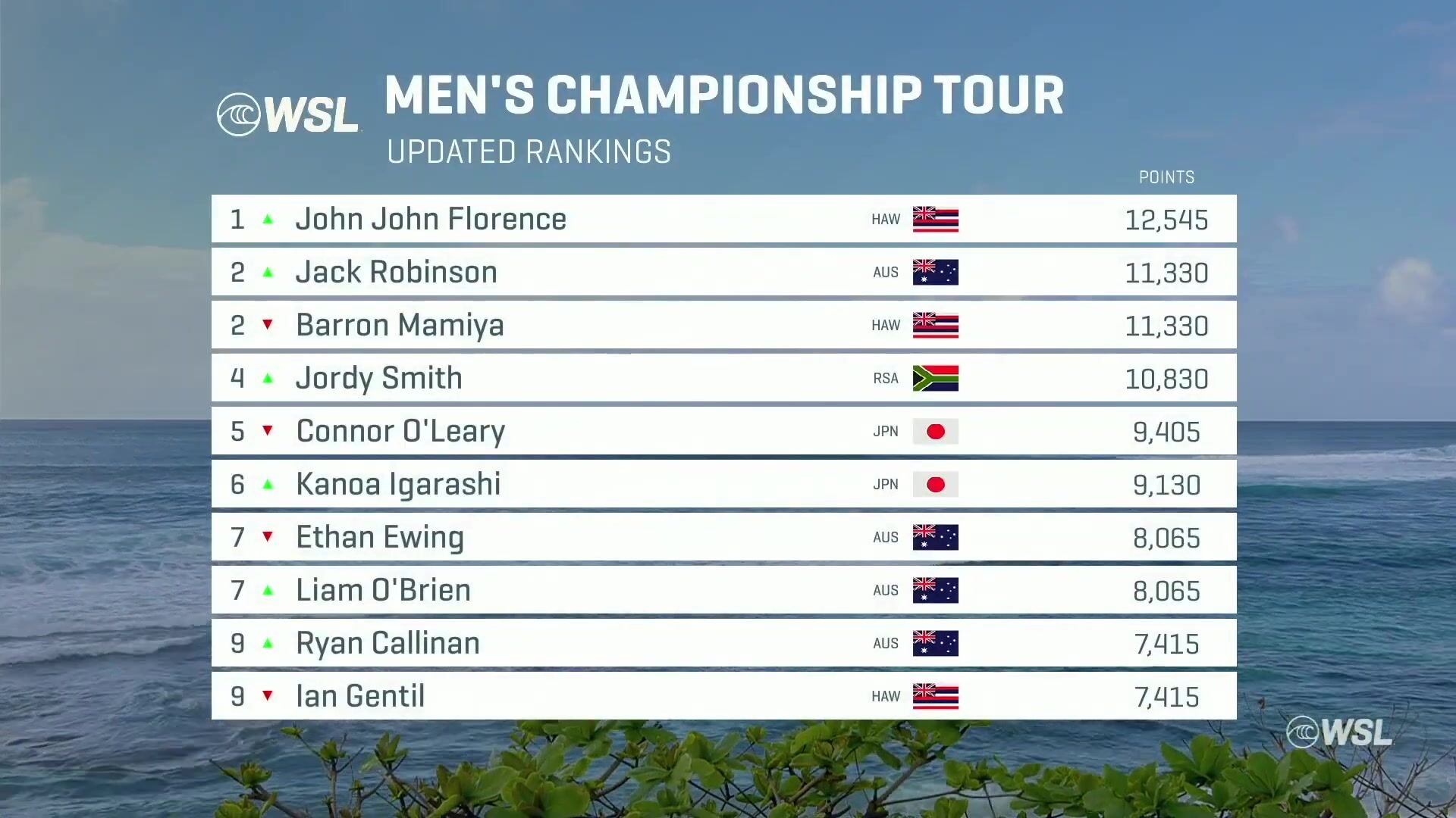 Check the latest on the 2024 Championship Tour rankings as the Hawai'i leg finishes with fireworks at the Hurley Pro Sunset Beach.
