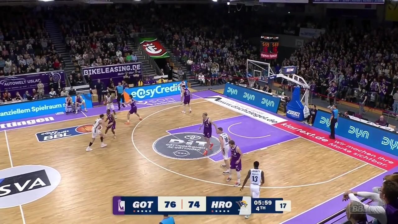 Watch all the highlights from the game between BG Göttingen and ROSTOCK SEAWOLVES in the easyCredit BBL