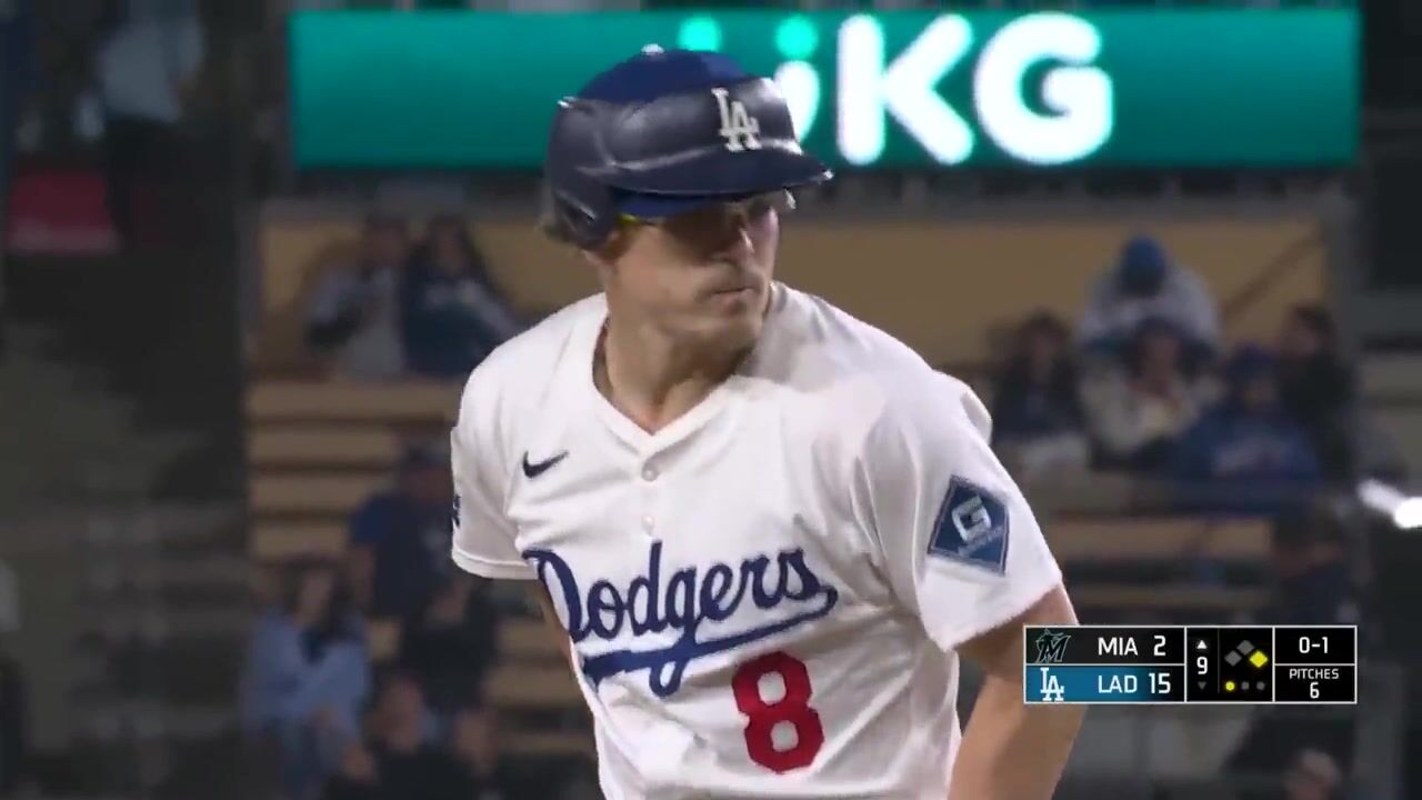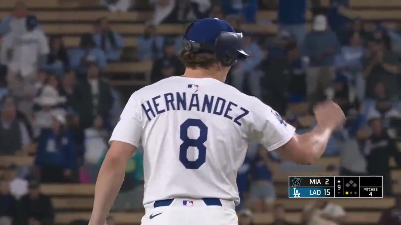 Kiké Hernández records a scoreless ninth inning of work for the Los Angeles Dodgers vs. the Miami Marlins.